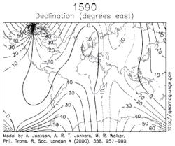 - ^ Jackson, Andrew; Jonkers, Art R. T.; Walker, Matthew R. (2000). "Four centuries of Geomagnetic Secular Variation from Historical Records". Philosophical Transactions of the Royal Society A. 358 (1768): 957–990. Bibcode:2000RSPTA.358..957J. CiteSeerX 10.1.1.560.5046. doi:10.1098/rsta.2000.0569. JSTOR 2666741. S2CID 40510741.