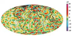 - ^ Hulot, G.; Eymin, C.; Langlais, B.; Mandea, M.; Olsen, N. (April 2002). "Small-scale structure of the geodynamo inferred from Oersted and Magsat satellite data". Nature. 416 (6881): 620–623. Bibcode:2002Natur.416..620H. doi:10.1038/416620a. PMID 11948347. S2CID 4426588.