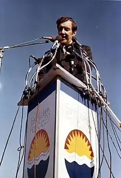 By far the largest source of funding for the first Earth Day was organized labor. Walter Reuther had led the United Auto Workers (UAW) since 1946, and he was a progressive supporter of civil rights, opposed the war, and championed the environment. He was a founding member of the Coalition for Clean Air, which successfully lobbied for the Clean Air Act of 1970. Walter Reuther, president of the United Auto Workers, made the first donation to support the first Earth Day in the amount of $2,000 (equivalent to $16,194 in 2024).[5] Under his leadership, the UAW also funded telephone capabilities so that the organizers could communicate and coordinate with each other from all across the United States.[6] The UAW also financed, printed, and mailed all of the literature and other materials for the first Earth Day and mobilized its members to participate in the public demonstrations across the country. According to Denis Hayes, "The UAW was by far the largest contributor to the first Earth Day" and "Without the UAW, the first Earth Day would have likely flopped!" Hayes further said, "Walter's presence at our first press conference utterly changed the dynamics of the coverage—we had instant credibility."[7]