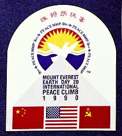 The Earth Day 20 Foundation highlighted its April 22 activities in George, Washington, near the Columbia River with a live satellite phone call with members of the historic Earth Day 20 International Peace Climb who called from their base camp on Mount Everest to pledge their support for world peace and attention to environmental issues.[61] The Earth Day 20 International Peace Climb was led by Jim Whittaker, the first American to summit Mt. Everest (many years earlier), and marked the first time in history that mountaineers from the United States, Soviet Union, and China had roped together to climb a mountain, let alone Mt. Everest.[61] The group also collected more than two tons of trash (transported down the mountain by support groups along the way) that was left behind on Mount Everest from previous climbing expeditions. The master of ceremonies for the Columbia Gorge event was the TV star, John Ratzenberger, from Cheers, and the headlining musician was the "Father of Rock and Roll", Chuck Berry.[61]