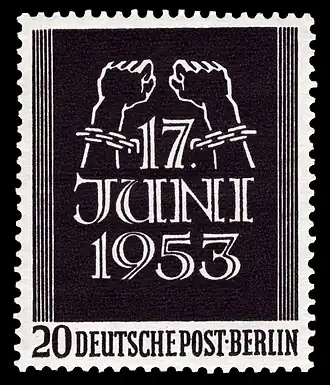 The 1953 uprising was celebrated in West Germany as a public holiday on 17 June until German reunification in 1990, after which it was replaced by German Unity Day, celebrated annually on 3 October.[5]
