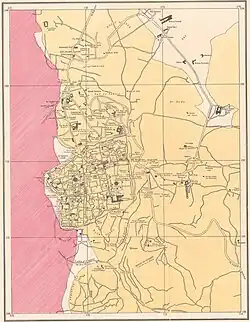 The Beilin–Abu Mazen agreement of 1995, suggested while Israel would not accept challenges to its political sovereignty over all of Jerusalem it might, with the idea of a holy basin, theoretically allow Palestinian extraterritorial sovereignty over a part of the East Jerusalem area, with Palestinians directly controlling the Noble Sanctuary, while Jews would obtain religious rights over the Temple Mount. This view, splitting religious and political authority, was unacceptable to Hamas and Arafat soon disowned the idea.[118] At the 2000 Camp David Summit, it was agreed there could be no return to the pre-1967 Jerusalem lines of demarcation; that Israel's unilaterally imposed municipal boundaries were not fixed; that just as Israel's expansion there would be larger than mapped just after 1967, so too the Palestinian expansion would stretch out to take in villages not connected to the city earlier; that Jerusalem would remain a single unified metropolitan unit not divided by an international border, and under the governance of two distinct municipal authorities, with one under full Palestinian sovereignty and serving as the capital of the State of Palestine, exercising full powers in most parts of East Jerusalem. An exchange of neighbourhoods was envisaged, with Israel taking sovereignty over Ma'ale Adumim, Givat Ze'ev and Gush Etzion, while excluding areas earlier included, such as Sur Baher, Beit Hanina and Shu'afat.[119] During the last serious negotiations in 2008 with the government of Ehud Olmert, Olmert, on 16 September, included a map which foresaw a shared arrangement over Jerusalem, with Israeli settlements remaining in Israel and Palestinian neighbourhoods part of a Palestinian state and constituting their future capital. The Holy Basin, including the Old City, would be under joint trusteeship overseen by Jordan, Saudi Arabia, Israel, the United States and the state of Palestine. Olmert showed, but would not share, the map with Mahmood Abbas, who was forced to make a copy of it on a napkin.[120]