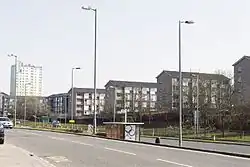 East Kilbride is divided into a number of smaller neighbourhoods bordered by main through-roads. Part of the new town design was that each of these would be a self-contained entity, with a variety of housing types, local shops and primary schools, and accessed safely for pedestrians via paths and underpasses separate from main roads.[22] This is true for the original areas of the new town (principally Calderwood, Greenhills, The Murray, St Leonards and Westwood) while newer developments, such as Stewartfield, Lindsayfield, Gardenhall/Mossneuk and more recently Jackton do not adhere as closely to this model and have a more generic suburban layout of low-density private housing, arranged mainly in cul-de-sacs fed by distributor roads.[37][38]