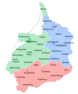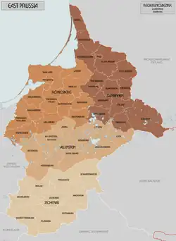 | Political subdivisions | Gumbinnen Königsberg Allenstein (from 1905) West Prussia (1922–1939) Zichenau (from 1939) | ||||||||||||||||||