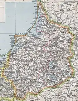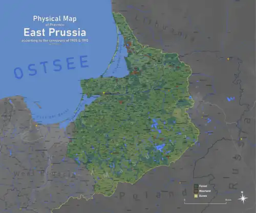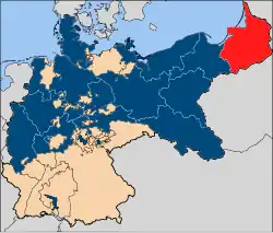 ![]() East Prussia (red), within the Kingdom of Prussia (blue), within the German Empire, between 1871 and 1918 | |||||||||||||||||||