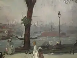 Dutch settlement of what became New Amsterdam began in 1623.[16] Some of the earliest of the small settlements in the area were along the west bank of the East River on sites that had previously been Native American settlements. As with the Native Americans, the river was central to their lives for transportation for trading and for fishing.[17] They gathered marsh grass to feed their cattle, and the East River's tides helped to power mills which ground grain to flour. By 1642 there was a ferry running on the river between Manhattan Island and what is now Brooklyn, and the first pier on the river was built in 1647 at Pearl and Broad Streets. After the British took over the colony in 1664, which was renamed "New York", the development of the waterfront continued, and a shipbuilding industry grew up once New York started exporting flour. By the end of the 17th century, the Great Dock, located at Corlear's Hook on the East River, had been built.[16]