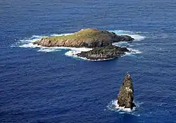 The phrase "Te pito o te henua" has been said to be the island's original name since French ethnologist Alphonse Pinart gave it the romantic translation "The Navel of the World" in his Voyage à l'Île de Pâques, published in 1877.[18] William Churchill (1912) inquired about the phrase and was told that there were three "te pito o te henua", these being the three capes (land's ends) of the island. The phrase appears to have been used in the same sense as the designation "Land's End" at the tip of Cornwall. He was unable to elicit a Polynesian name for the island and concluded that there may not have been one.[19]