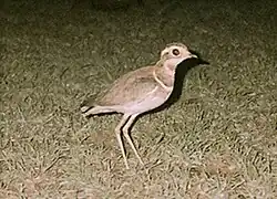 Bird surveys have found about 425 species belonging to 57 families in the region. Four species of hornbills are found in the region and are considered keystone species.[14]: 50 [26] The Jerdon's courser was thought to be extinct in the wild before it was re-discovered in the range in 1986. More than 50% of the wild population of the critically endangered Indian bustard is found in the region.[14]: 53 Common and widespread species include the red-vented bulbul, white-browed bulbul, red-whiskered bulbul, common iora, and purple-rumped sunbird. Five species of birds that are endemic to the Western Ghats region have been sighted in the fringes of the Eastern Ghats. These include grey-headed bulbul, Nilgiri wood pigeon, Malabar parakeet, crimson-backed sunbird, and rufous babbler. Other species of avifauna include laughing dove, Indian nightjar, jungle owlet, red avadavat, Malayan night heron, striated heron, white-naped woodpecker, savanna nightjar, brown hawk-owl, Nilgiri flowerpecker, spot-bellied eagle-owl, blue-eared kingfisher, green imperial pigeon, oriental dwarf kingfisher, Indian swiftlet, and white-browed fantail. Raptors included white-eyed buzzard, grey-headed fish eagle, lesser fish eagle.[27][28] Two species of critically endangered vultures – Indian vulture and red-headed vulture have been reported in the region.[29][30]