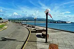 ![]() ![]() ![]() ![]() ![]() (from top: left to right) Port section of the Guiuan Integrated Transport Terminal, Baybay Boulevard in Borongan, Balangiga Church, Church of San Julian, Homonhon and Olot Beach. | |