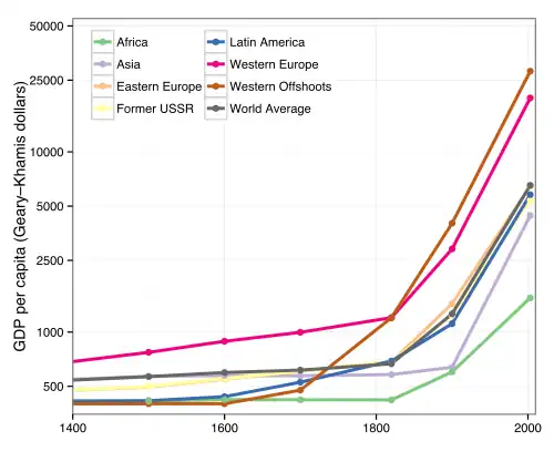 Unified growth theory was developed by Oded Galor and his co-authors to address the inability of endogenous growth theory to explain key empirical regularities in the growth processes of individual economies and the world economy as a whole.[107][108] Unlike endogenous growth theory that focuses entirely on the modern growth regime and is therefore unable to explain the roots of inequality across nations, unified growth theory captures in a single framework the fundamental phases of the process of development in the course of human history: (i) the Malthusian epoch that was prevalent over most of human history, (ii) the escape from the Malthusian trap, (iii) the emergence of human capital as a central element in the growth process, (iv) the onset of the fertility decline, (v) the origins of the modern era of sustained economic growth, and (vi) the roots of divergence in income per capita across nations in the past two centuries. The theory suggests that during most of human existence, technological progress was offset by population growth, and living standards were near subsistence across time and space. However, the reinforcing interaction between the rate of technological progress and the size and composition of the population has gradually increased the pace of technological progress, enhancing the importance of education in the ability of individuals to adapt to the changing technological environment. The rise in the allocation of resources towards education triggered a fertility decline enabling economies to allocate a larger share of the fruits of technological progress to a steady increase in income per capita, rather than towards the growth of population, paving the way for the emergence of sustained economic growth. The theory further suggests that variations in biogeographical characteristics, as well as cultural and institutional characteristics, have generated a differential pace of transition from stagnation to growth across countries and consequently divergence in their income per capita over the past two centuries.[107][108]