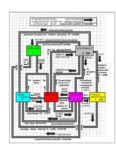 Circulation model of economic flows for a closed market economy. In this model the use of natural resources and the generation of waste (like greenhouse gases) is not included.