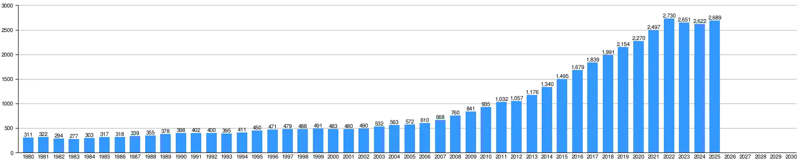 • Decrease 3.8% (2025)[5]
