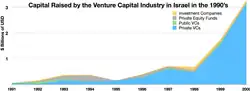 Israel's quality higher education and the establishment of a highly motivated and educated populace is largely responsible for ushering in the country's high technology boom and rapid economic development by regional standards.[37] The country has developed a strong educational infrastructure and a high-quality business startup incubation system for promoting cutting edge new ideas to create value-driven goods and services. These developments have allowed the country to create a high concentration of high-tech companies across the country's regions. These companies are financially backed by a strong venture capital industry.[38] Its central high technology hub, the "Silicon Wadi", is considered second in importance only to its Californian counterpart.[39][40][41][42] Numerous Israeli companies have been acquired by global multinational corporations for their profit-driven technologies in addition to their reliable and quality corporate personnel.[43]