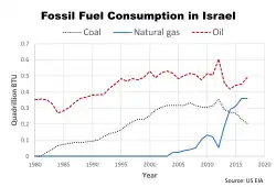 The country's major economic sectors are high-technology and industrial manufacturing. The Israeli diamond industry is one of the world's centers for diamond cutting and polishing, amounting to 21% of all exports in 2017.[34] As the country is relatively poor in natural resources, it consequently depends on imports of petroleum, raw materials, wheat, motor vehicles, uncut diamonds and production inputs. Nonetheless, the country's nearly total reliance on energy imports may change in the future as recent discoveries of natural gas reserves off its coast and the Israeli solar energy industry have taken a leading role in Israel's energy sector.[35][36]