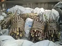 Principal food crops include cassava, peanuts, sorghum, millet, maize, sesame, and plantains. Principal cash crops for export include cotton, coffee, and tobacco.[16] Timber has accounted for about 16% of export earnings and the diamond industry for nearly 54%.[15] Central African Republic is a least developed country according to United Nations.