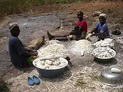 Sparsely populated and landlocked, the Central African Republic is overwhelmingly agrarian.[14] The vast bulk of the population engages in subsistence farming and 55% of the country's GDP derives from agriculture.[14] Subsistence agriculture, together with forestry, remains the backbone of the economy of the Central African Republic (CAR), with more than 70% of the population living in outlying areas.[15]