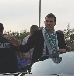 Džeko celebrating the 2008–09 Bundesliga title with VfL Wolfsburg
