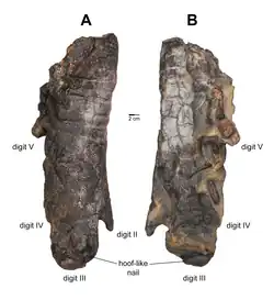 - ^ Sereno, Paul C.; Saitta, Evan T.; Vidal, Daniel; Myhrvold, Nathan; Real, María Ciudad; Baumgart, Stephanie L.; Bop, Lauren L.; Keillor, Tyler M.; Eriksen, Marcus; Derstler, Kraig (December 18, 2025). "Duck-billed dinosaur fleshy midline and hooves reveal terrestrial clay-template "mummification"". Science. 391 (6780) eadw3536. doi:10.1126/science.adw3536.