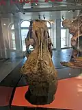 Multiple specimens of Edmontosaurus annectens have been found with preserved skin impressions. Several have been well-publicized, such as the "Trachodon mummy" of the early 20th century,[64][65] and the specimen nicknamed "Dakota",[32][33][66] the latter apparently including remnant organic compounds from the skin.[66] Because of these finds, the scalation of Edmontosaurus annectens is known for most areas of the body. Skin impressions are less well known for E. regalis; a mummified specimen (UALVP 53722) from the Wapiti Formation which preserves a soft tissue cranial crest or wattle on the head has been referred to E. regalis by Phil R. Bell and colleagues in 2014,[67] but a re-examination by Henry Sharpe and colleagues in 2025 suggested that this specimen cannot be confidently referred to any known species of Edmontosaurus, and thus it probably represents a distinct taxon belonging to the Edmontosaurini, leading to a tentative assignment to as E. sp.[68]