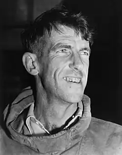 Hillary became interested in mountaineering while in secondary school. He made his first major climb in 1939, reaching the summit of Mount Ollivier.[2] He served in the Royal New Zealand Air Force as a navigator during World War II and was wounded in an accident. Prior to the Everest expedition, Hillary had been part of the British reconnaissance expedition to the mountain in 1951 as well as an unsuccessful attempt to climb Cho Oyu in 1952.