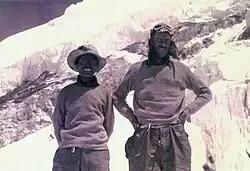 Hillary had hoped to climb with Lowe, but Hunt named two teams for the ascent: Tom Bourdillon and Charles Evans; and Hillary and Tenzing.[35] Hillary, therefore, made a concerted effort to forge a working friendship with Tenzing.[31][36] Hillary wrote, "Tenzing had substantially greater personal ambition than any Sherpa I had met."[37]