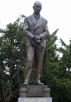 Edvard Beneš (Czech: [ˈɛdvard ˈbɛnɛʃ] ⓘ; 28 May 1884 – 3 September 1948) was a Czech politician and statesman who served as the president of Czechoslovakia from 1935 to 1938, and again from 1939 to 1948. During the first six years of his second stint, he led the Czechoslovak government-in-exile during World War II.