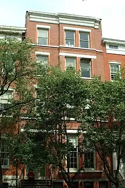 In 1913, at the Armory Show, Hopper earned $250 when he sold his first painting, Sailing (1911), to an American businessman Thomas F. Vietor, which he had painted over an earlier self-portrait.[33] Hopper was thirty-one, and although he hoped his first sale would lead to others in short order, his career would not catch on for many more years.[34] He continued to participate in group exhibitions at smaller venues, such as the MacDowell Club of New York.[35] Shortly after his father's death that same year, Hopper moved to the 3 Washington Square North apartment in the Greenwich Village section of Manhattan, where he would live for the rest of his life.