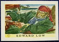 According to Charles Johnson's A General History of the Pyrates, Edward Low was born in Westminster, Middlesex, England, in 1690.[5] He was described as illiterate, having a "quarrelsome nature", and always ready to cheat,[6] running "wild in the streets of his native parish".[7] As a young man, he was said to be a pickpocket and gambler, playing games of chance with the footmen of the nearby House of Commons.[5]