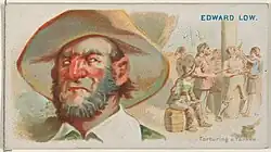 One story describes Low burning a French cook alive, saying he was a "greasy fellow who would fry well"; another tells how he once killed 53 Spanish captives with his cutlass.[6] Some historians, including David Cordingly, believe this was deliberately done to cultivate a ferocious image.[23] Historian Edward Leslie described Low as a psychopath with a history filled with "mutilations, disembowelings, decapitations, and slaughter".[14]