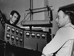 Oppenheimer recruited McMillan to join the Manhattan Project, the wartime effort to create atomic bombs, in September 1942. Initially, he commuted back and forth between San Diego, where his family was, and Berkeley.[17] In November he accompanied Oppenheimer on a trip to New Mexico on which the Los Alamos Ranch School was selected as the site of the project's weapons research laboratory, which became the Los Alamos Laboratory.[22] With Oppenheimer and John H. Manley, he drew up the specifications for the new laboratory's technical buildings.[23] He recruited personnel for the laboratory, including Richard Feynman and Robert R. Wilson, established the test area known as the Anchor Ranch, and scoured the country for technical equipment from machine tools to a cyclotron.[24]