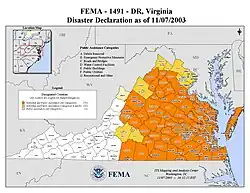 - ^ FEMA (2003). "President Orders Disaster Aid For Virginia Hurricane Recovery". Archived from the original on October 5, 2006. Retrieved 2007-03-18.