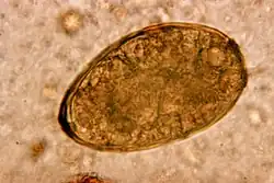 All sexually reproducing life, including both plants and animals, produces gametes.[75] The male gamete cell, sperm, is usually motile whereas the female gamete cell, the ovum, is generally larger and sessile. The male and female gametes combine to produce the zygote cell.[76] In multicellular organisms, the zygote subsequently divides in an organised manner into smaller more specialised cells (Embryogenesis), so that this new individual develops into an embryo. In most animals, the embryo is the sessile initial stage of the individual life cycle, and is followed by the emergence (that is, the hatching) of a motile stage. The zygote or the ovum itself or the sessile organic vessel containing the developing embryo may be called the egg.[77]