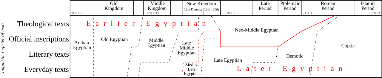 The Egyptian language is conventionally grouped into six major chronological divisions:[25]