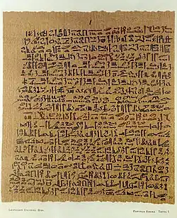 ![]() Ebers Papyrus detailing treatment of asthma (written in hieratic) | |||||||