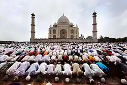 Indian Muslims offering their ‘Eid al-Fitr’ prayer at the Taj Mahal, Agra, India