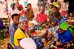 Group of Yao women sharing a meal of ugali during Eid ul-Fitr in Mozambique