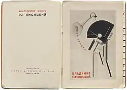 El Lissitzky (Russian: Эль Лиси́цкий, born Lazar Markovich Lissitzky Russian: Ла́зарь Ма́ркович Лиси́цкий, ⓘ; 23 November [O.S. 11 November] 1890 – 30 December 1941) was a Russian and Soviet artist, active as a painter, illustrator, designer, printmaker, photographer, and architect. He was an important figure of the avant-garde, helping develop suprematism with his mentor, Kazimir Malevich, and designing numerous exhibition displays and propaganda works for the Soviet Union.