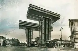 Lissitzky became first interested in photography in 1920s; in 1924 his future wife, Sophie Küppers, gave him her father's camera, "a monstrosity with wooden plate-holders measuring 13 x 18 cm. And a large Zeiss lens."[123] He soon created numerous photomontages, and started to promote fotopis, or "photo-painting".[124][125] His photomontages were described as done using "various darkroom techniques, often in unprecedented combinations, including double printing, sandwiched negatives, the use of photogram elements and the creation of multiple generations of prints."[126] However, modern analysis showed that Lissitzky used cheap, simple, and even "old-fashioned" techniques; for majority of his early works darkroom was not needed, and only after 1926 a real darkroom and an enlarger became necessary.[127] Klaus Pollmeier wrote that "He seems to have visualized many aspects of the final image before the exposure of the negative in the camera, compensating for the shortcomings of his limited technology with a sharp and almost boundless imagination."[127]
