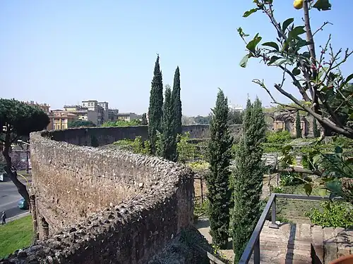 He developed the imperial palace at Horti Spei Veteris with the inclusion of the nearby land inherited from his father Sextus Varius Marcellus. Elagabalus made it his favourite retreat and designed it (as for Nero's Domus Aurea project) as a vast suburban villa divided into various building and landscape nuclei with the Amphitheatrum Castrense which he built and the Circus Varianus hippodrome[62] fired by his unbridled passion for circuses and his habit of driving chariots inside the villa. He raced chariots under the family name of Varius.[63]