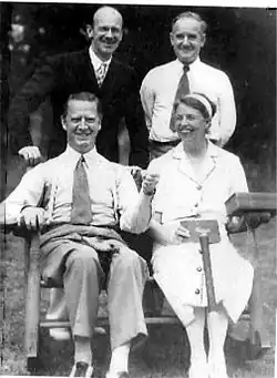 In August 1921, the family was vacationing at their summer home on Campobello Island, New Brunswick, Canada, when Franklin was diagnosed with a paralytic illness, at the time believed to be polio.[45][46] During the illness, through her nursing care, Roosevelt probably saved Franklin from death.[47] His legs remained permanently paralyzed. When the extent of his disability became clear, Roosevelt fought a protracted battle with her mother-in-law over his future, persuading him to stay in politics despite Sara's urgings that he retire and become a country gentleman. Franklin's attending physician, Dr. William Keen, commended Eleanor's devotion to the stricken Franklin during the time of his travail. "You have been a rare wife and have borne your heavy burden most bravely," he said, proclaiming her "one of my heroines."[20]