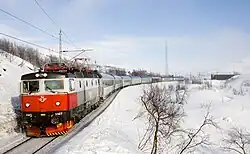 The Trans-Siberian Railway has been partly electrified since 1929, entirely since 2002. The system is 25 kV AC 50 Hz after the junction station of Mariinsk near Krasnoyarsk, 3,000 V DC before it, and train weights are up to 6,000 tonnes.[41]