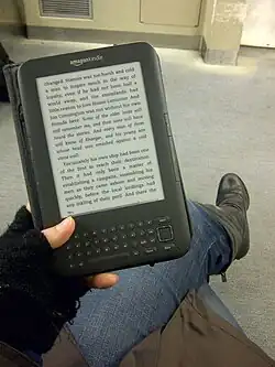 Many e-readers, devices meant to replace traditional books, utilize electronic paper for their displays in order to further resemble paper books; one such example is the Kindle series by Amazon.