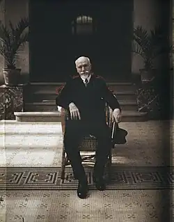 Under his leadership, Greece underwent profound modernization through liberal-democratic policies. His diplomatic and military efforts expanded Greece's territory, marking a shift in the country's orientation from East to West.[2][3] Venizelos achieved international fame in his lifetime, and is often called "The Maker of Modern Greece" for his transformative role.[4] His legacy as the "Ethnarch" continues to endure.[5]