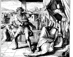 • Ahimelech, great-grandson of Eli: slain by Doeg the Edomite, fulfilling part of the curse on the House of Eli that none of his male descendants would live to old age.[14]