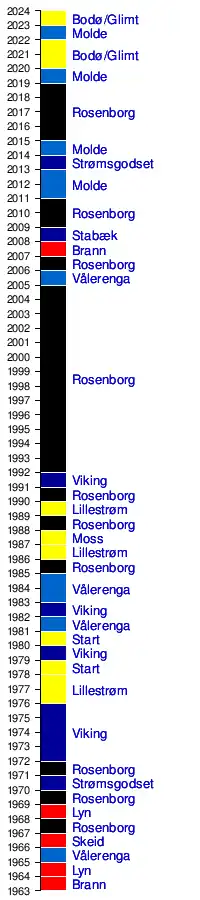 - ^ a b Northern Norwegian teams were not allowed to qualify for the top flight division before 1972.