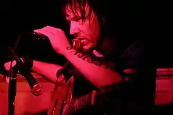 In the first of only three concerts performed in 2002, Smith co-headlined Northwestern University's A&O Ball with Wilco on May 2 in Chicago.[64] He was onstage for nearly an hour but failed to complete half of the songs.[16][65] He claimed that his poor performance was due to his left hand having fallen asleep and told the audience it felt "like having stuff on your hand and you can't get it off".[16] Smith's performance was reviewed as "undoubtedly one of the worst performances ever by a musician"[66] and an "excruciating […] nightmare".[67] A reporter for the online magazine Glorious Noise wrote, "It would not surprise me at all if Elliott Smith ends up dead within a year."[68]