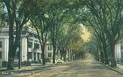 Lafayette Street in Salem, Massachusetts - an example of the high-tunneled effects of Ulmus americana avenues once common in New England (colorized postcard, 1910)