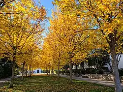 A row of Princeton elm trees, which are moderately resistant to Dutch elm disease, at Scripps College in Claremont, California.[32]