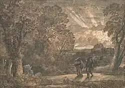 Elm in boatbuilding: John Constable, Boat-Building Near Flatford Mill, 1815 (landscape with hybrid elms Ulmus × hollandica[12])