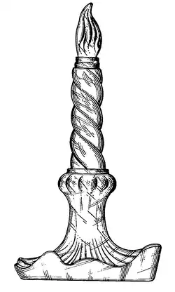 Schiaparelli's perfumes were noted for their unusual packaging and bottles. Her best-known perfume was "Shocking!" (1936), contained in a bottle sculpted by Leonor Fini in the shape of a woman's torso inspired by Mae West's tailor's dummy and Dalí paintings of flower-sellers.[61][85] The packaging, also designed by Fini, was in shocking pink, one of Schiaparelli's signature colours which was said to have been inspired by Daisy Fellowes' Tête de Belier (Ram's Head) pink diamond.[75][86]